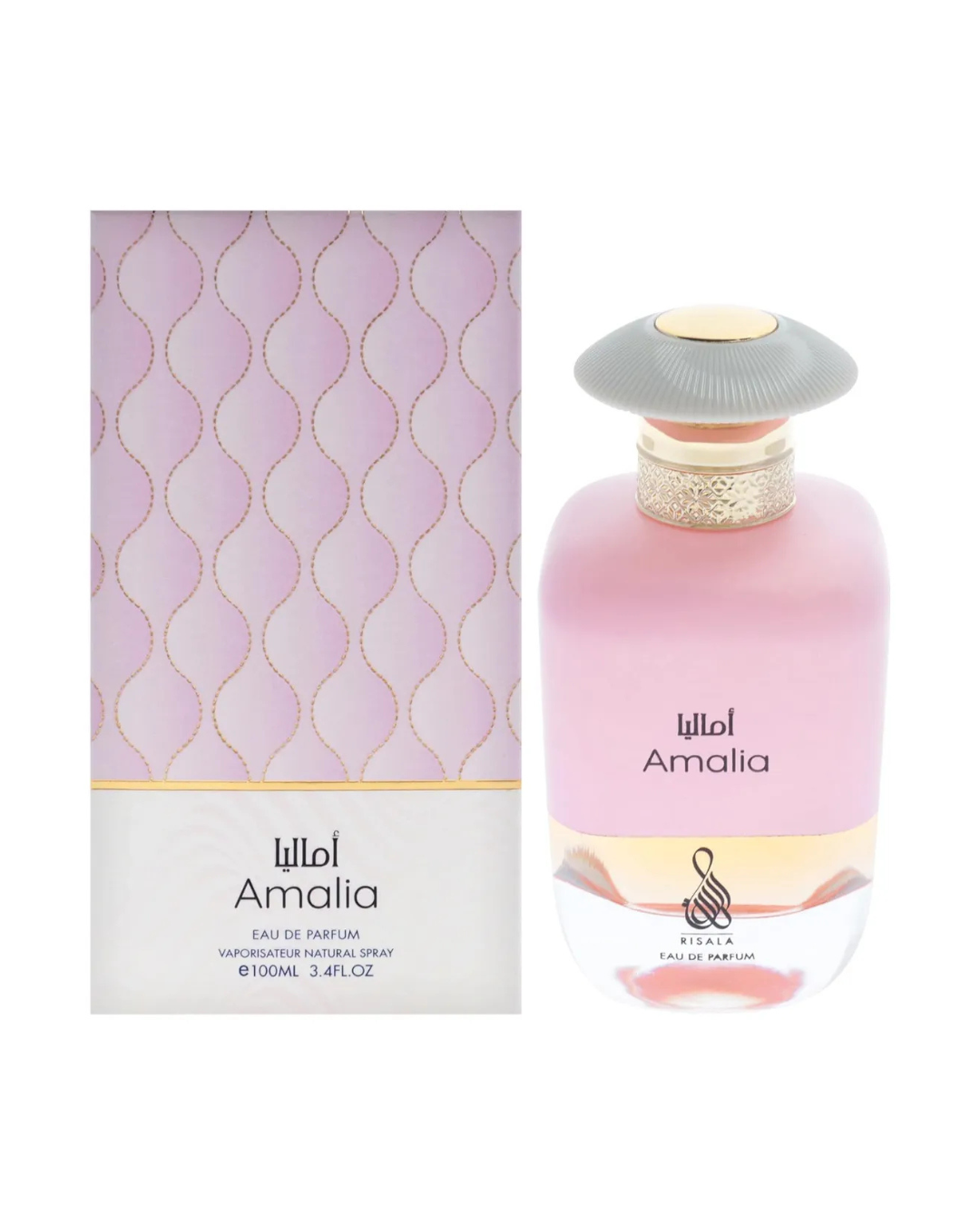 Amalia de Risala es una fragancia de la familia olfativa Oriental Amaderada para Mujeres. Esta fragancia es nueva. Amalia se lanzó en 2024. Las Notas de Salida son clavos de olor, limón (lima ácida) y toronja (pomelo); las Notas de Corazón son frutas tropicales, romero y azafrán; las Notas de Fondo son vainilla, notas amaderadas y madera de oud.