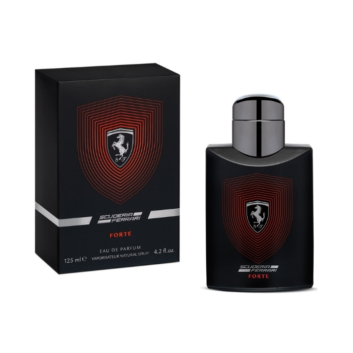 Ferrari Forte: una fragancia moderna y cálida con notas de piña, canela y vainilla para el hombre profesional.